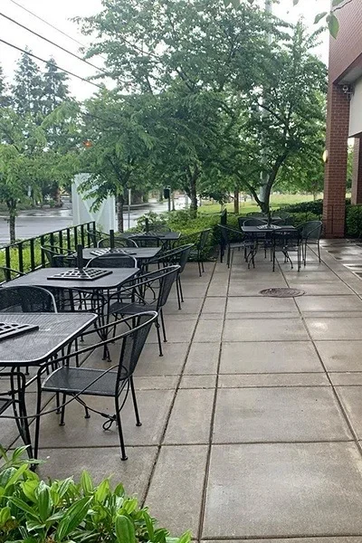 Outdoor seating areas like restaurant patios and hotel courtyards necessitate regular maintenance to maintain their inviting ambiance.